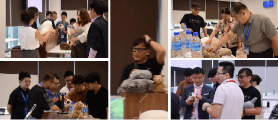 来自日本的特邀讲师Shunsuke Aoki(青木俊介)也给大家带来了以可爱动物作为外形的、旨在提升生活幸福度的机器人。毛茸茸的外表下是设计人员对当今高压社会下的人们解压方式的独到见解,有可以啃咬手指的小猫,也有会随使用者的呼吸频率而改变起伏程度的抱枕。交流团队中的老师与同学也上前体验了这些产品,更深刻地理解了社交机器人的社会性这一概念。