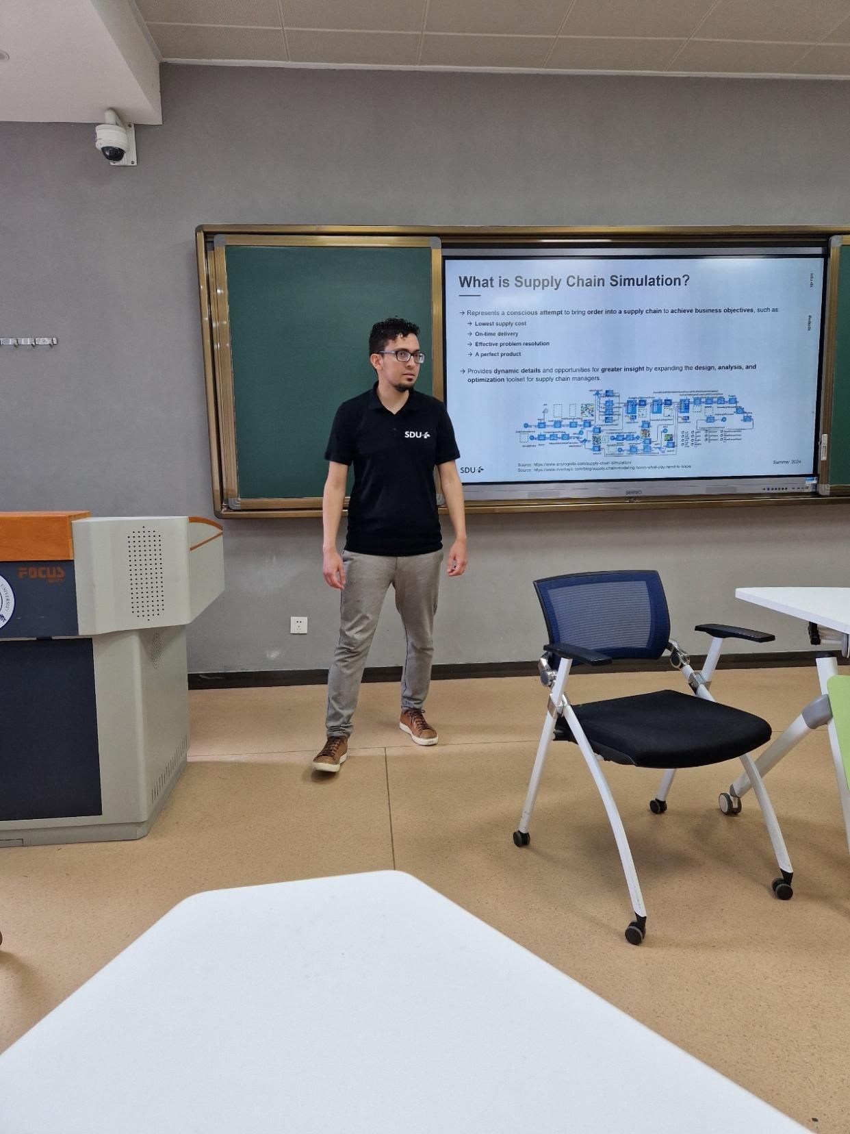 授课。课程名称为《供应链建模与仿真》,课程主要内容围绕供应链建模与仿真展开,重点关注如何利用模型和仿真工具来优化供应链的运作。教授详细讲解了供应链的各个环节和流程,并介绍了常见的供应链管理问题和挑战。学生们在课程中学习了建立供应链模型的基本方法,包括数据采集、模型设计、参数设置等;拓展了对供应链管理领域的知识视野,还掌握了实用的建模和仿真技能。这些知识和技能对于他们未来在供应链行业的发展将起到积极的推动作用。