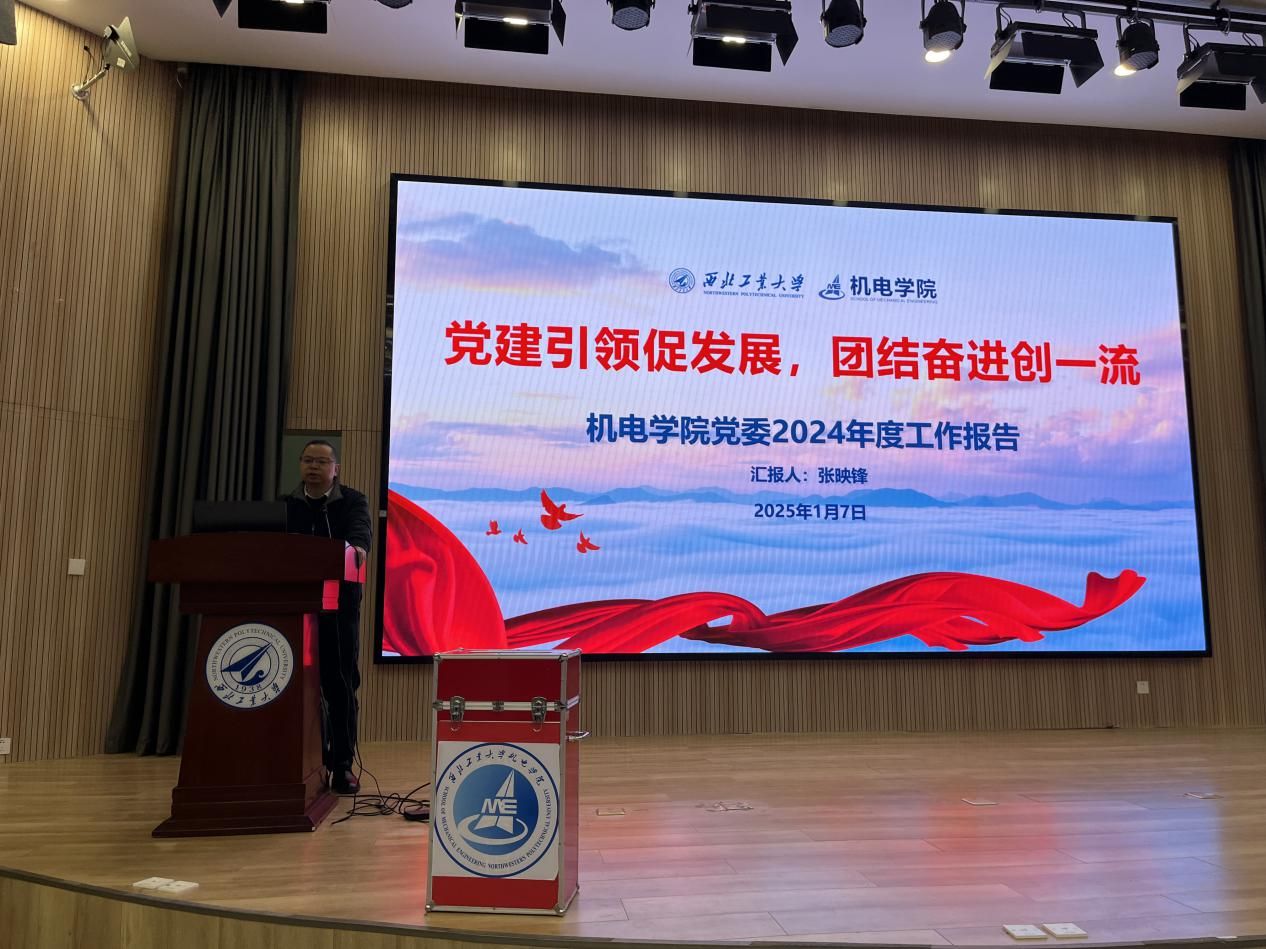 党委书记张映锋以“党建引领促发展,团结奋进创一流”为主题,围绕政治建设、思想建设、组织建设和廉政建设四个方面对年度党建工作和重点工作进行了个人述职汇报。他对全院上下追求卓越的干事创业氛围提出肯定,并表示学院在新的一年将继续落实党的二十届三中全会精神和学校第十四次党代会精神,提高政治站位,围绕学校127目标,推动党建工作与学院业务工作深度融合,做好长期发展规划,对接好学校“天下工大、世界三航”远景目标,以一流党建引领世界一流学院建设。
