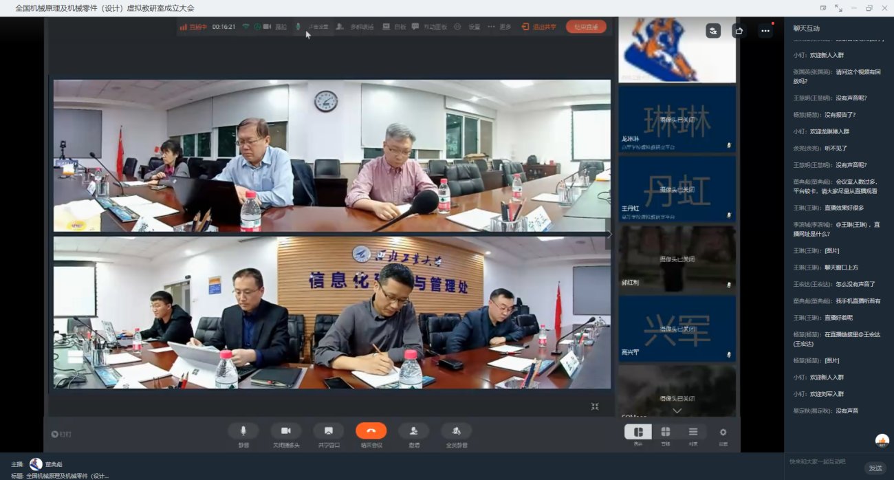 院长常洪龙、副院长常智勇以及参与申报机械原理及机械零件(设计)课程虚拟教研室的西安交通大学、上海交通大学、西安电子科技大学、西北农林科技大学、北京理工大学、中国矿业大学、山东大学、电子科技大学、西南交通大学、郑州大学、宁夏大学、兰州理工大学12所高校的课程负责人、出版社及相关企业负责人、本虚拟教研室成员近300人线上线下参加会议。会议由污污漫画