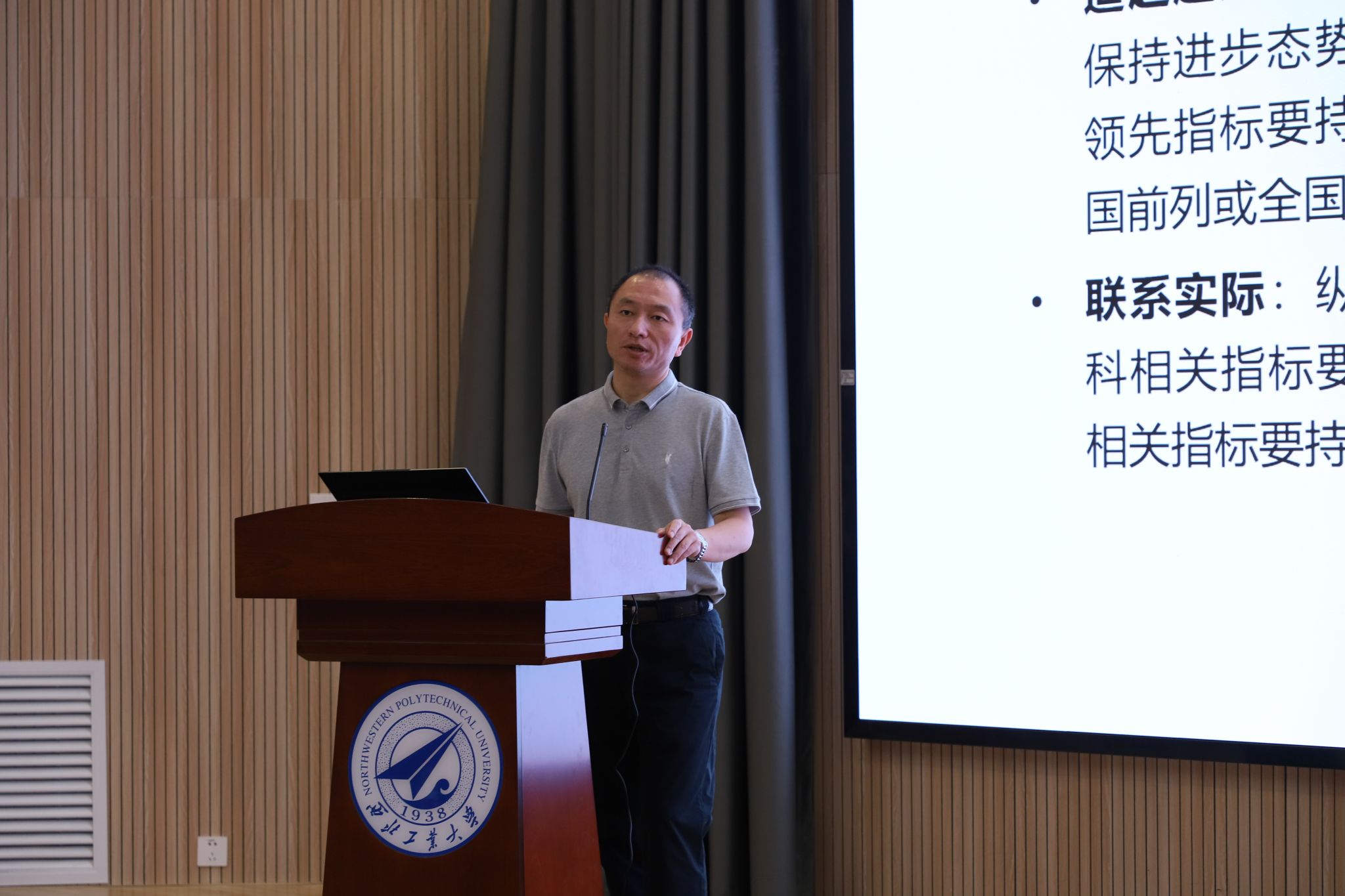 核心指标展开分析。他重点分析了师资队伍人才的占比,强调学院将筑巢引凤,加快推动高水平人才“内培外引”。随后,常洪龙还作了本科教育教学审核评估动员报告和机械工程第五轮学科评估分析报告。号召全体教职工踔厉奋发,为提升学院人才培养质量、师资队伍建设、科学研究水平不懈努力。