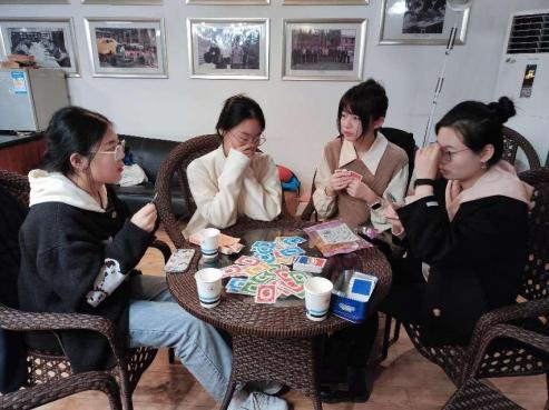此次活动将同学们欢聚一室,形形色色的桌游卡牌让每个人迅速进入状态,班长组织大家进行了破冰趣味游戏,之前彼此之间接触较少的同学们之间逐渐因为有趣的环节而熟络起来,大家紧接着玩了很多团队合作型的桌游,每位同学都各尽其责,热烈发言讨论,游戏中,欢声笑语与思维碰撞让团建氛围逐渐上升到顶点。