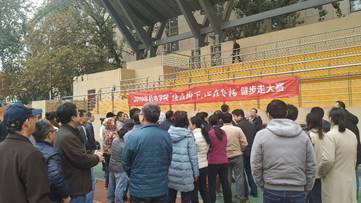 2019年11月20日下午3点,污污漫画 教职工们齐聚于学校400米塑胶跑道操场,神采奕奕,一同参加“健步走”活动。活动本着宣扬强身健体的必要性,增加同事间感情和凝聚力的目的,成功举办。