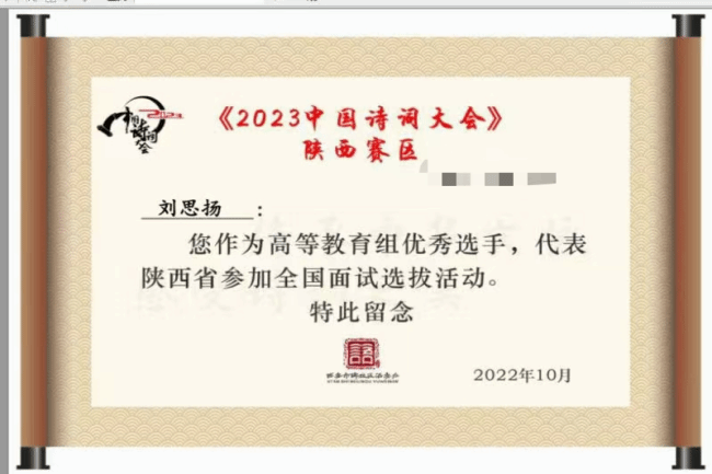 在公开刊物发表诗词十余首,作品曾获第一届“终南山杯”诗词大赛一等奖,“华文奖”全国大学生文旅创作大赛一等奖等,现为西安诗词学会会员、西昌市作家协会会员,西安诗词学会青年工作委员会副主任。