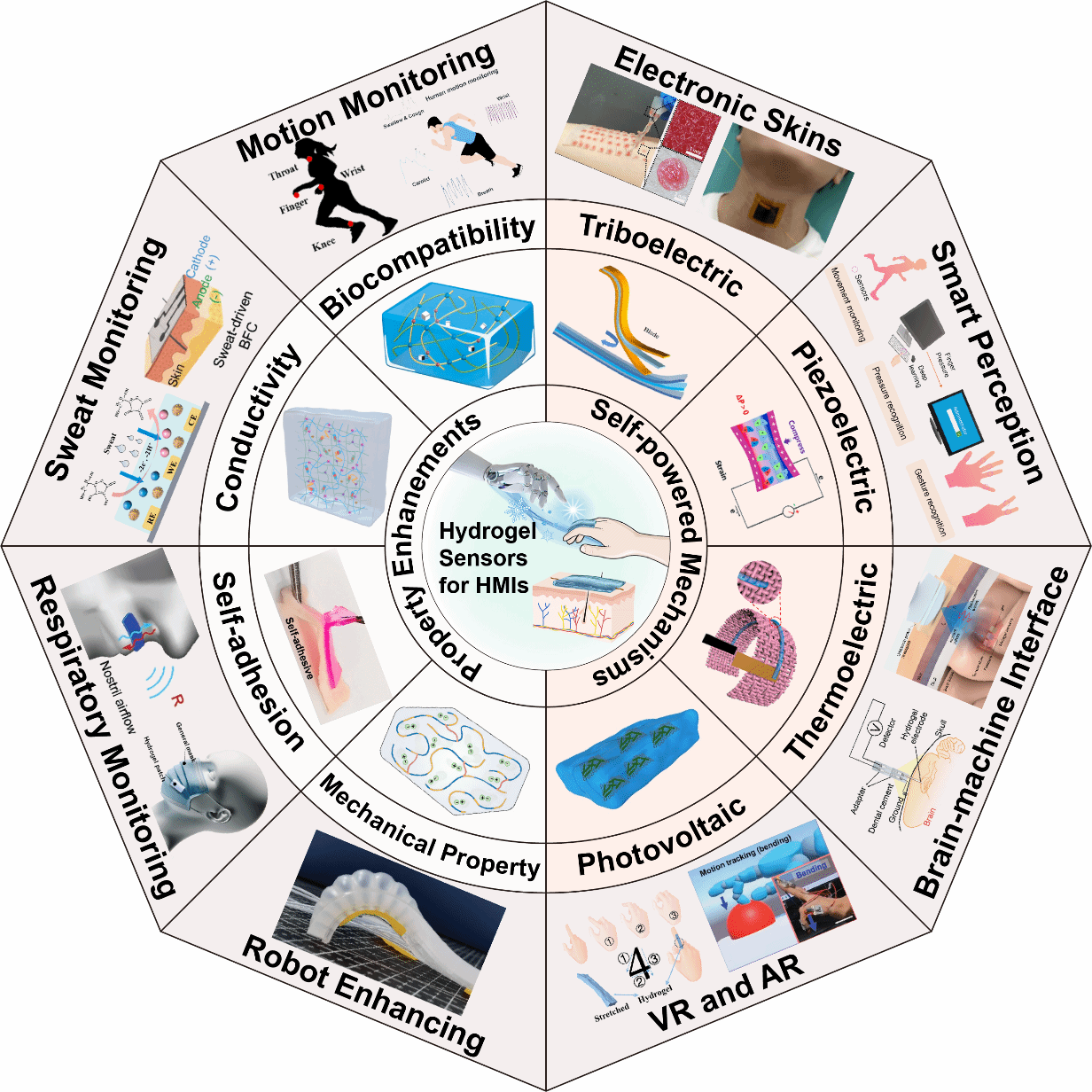 水凝胶材料因其与人体组织相近的力学性能和优异的生物兼容性,在柔性电子领域展现出显著优势。基于这些特性,自供能水凝胶传感器近年来在电子皮肤、机器人感知、医疗健康、康复训练及脑机界面等领域得到快速发展,为人机交互界面向可持续、能量自治、智能化方向发展提供了新的技术路径。