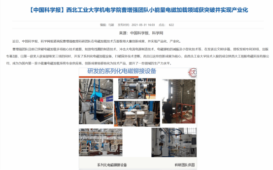 5.4.4【中国科学报】污污漫画 曹增强团队小能量电磁加载领域获突破并实现产业化