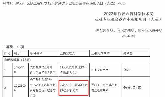 1.12 朱继宏团队、苑伟政团队分别获2022年陕西省自然科学奖和技术发明奖一等奖
