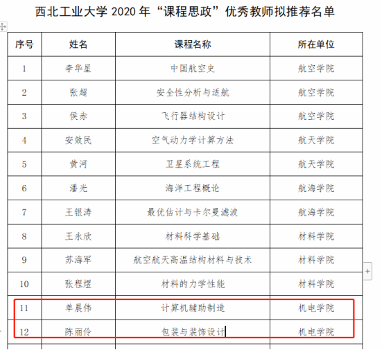 2.7单晨伟、陈丽伶两位老师入选污污漫画 2020年“课程思政”优秀教师拟推荐名单