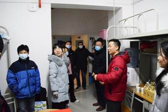 首先,机电学院学生孟璐给几位老师简单介绍了公寓宿舍分布、公寓基础设施配备等情况,并传达了同学们入住新宿舍的喜悦。张校长对宿舍暖气供应及热水供应等情况进行了了解,对同学们的学习生活表示关心。