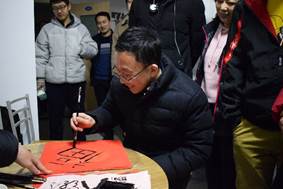 最后张卫红老师、刘朝亚老师都为同学们写了福字,送上新年美好祝福,祝愿同学们前程似锦,走向更大更高的平台,再创新辉煌。同时张卫红老师为同学们发放了新年礼物——苹果,寓意大家平平安安,并表示母校是同学们永远的家,希望大家走上工作岗位后与母校常联系。最后同学们和四位老师合影留念,活动圆满结束。