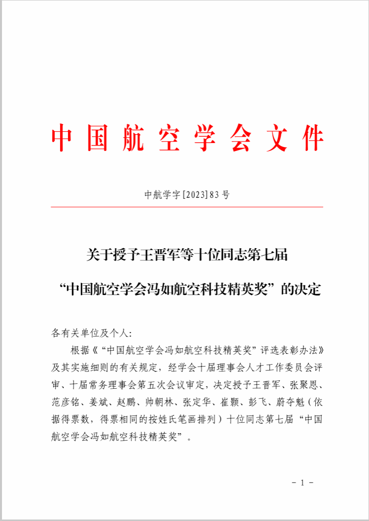 近日,由中国航空学会主办的第七届“冯如航空科技精英奖”(以下简称“冯如奖”)评选结果正式揭晓,共有10位航空科技工作者获此殊荣。我院张定华教授获奖。